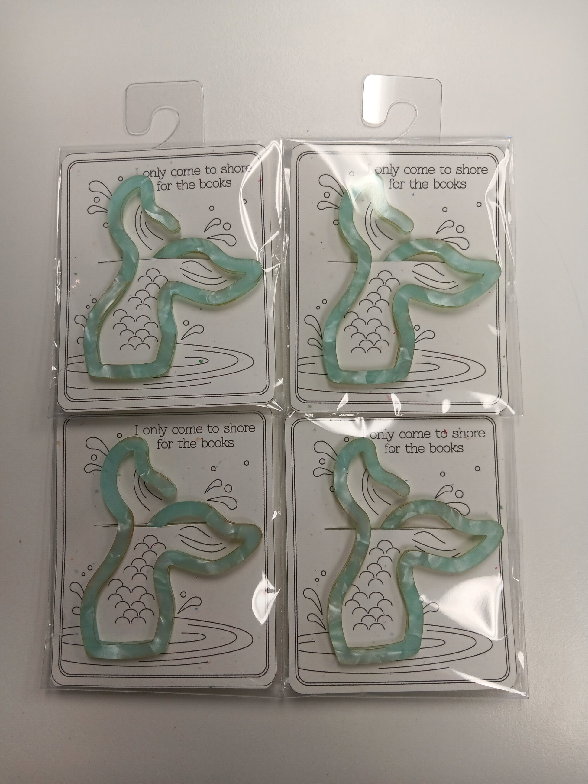 These jumbo paperclip bookmarks are made with 1/8 inch acrylic. Mermaid style! Pretty, creamy blue swirl design with faint khaki highlights. 3 inches by 2.5 inches wide.