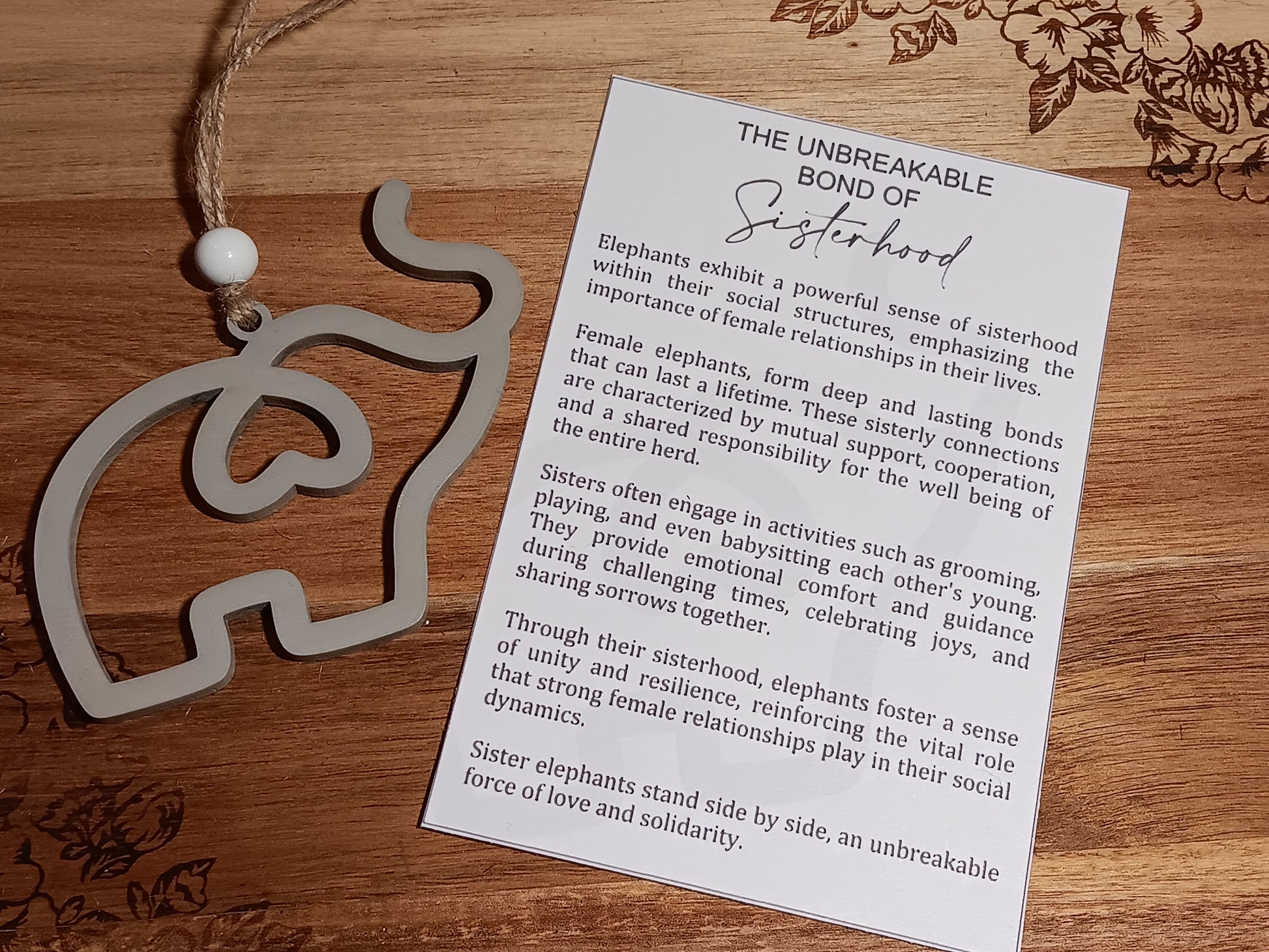 Need a special gift for your sister, or a friend who's like a sister? Check out our grey elephant sisterhood ornament! Each ounce comes with a touching poem about "Sisterhood."
